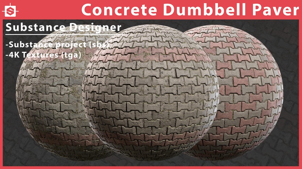 Concrete Dumbbell Pavers Bricks - Substance Designer
